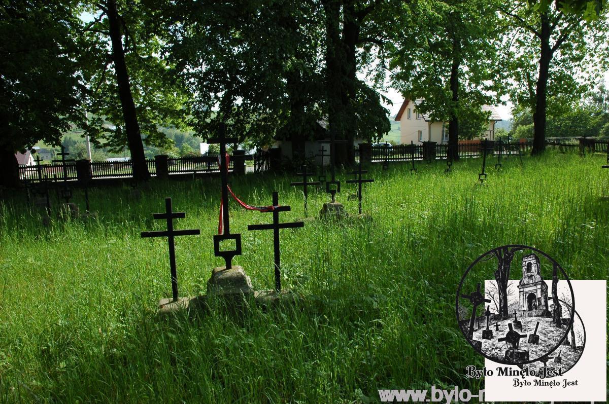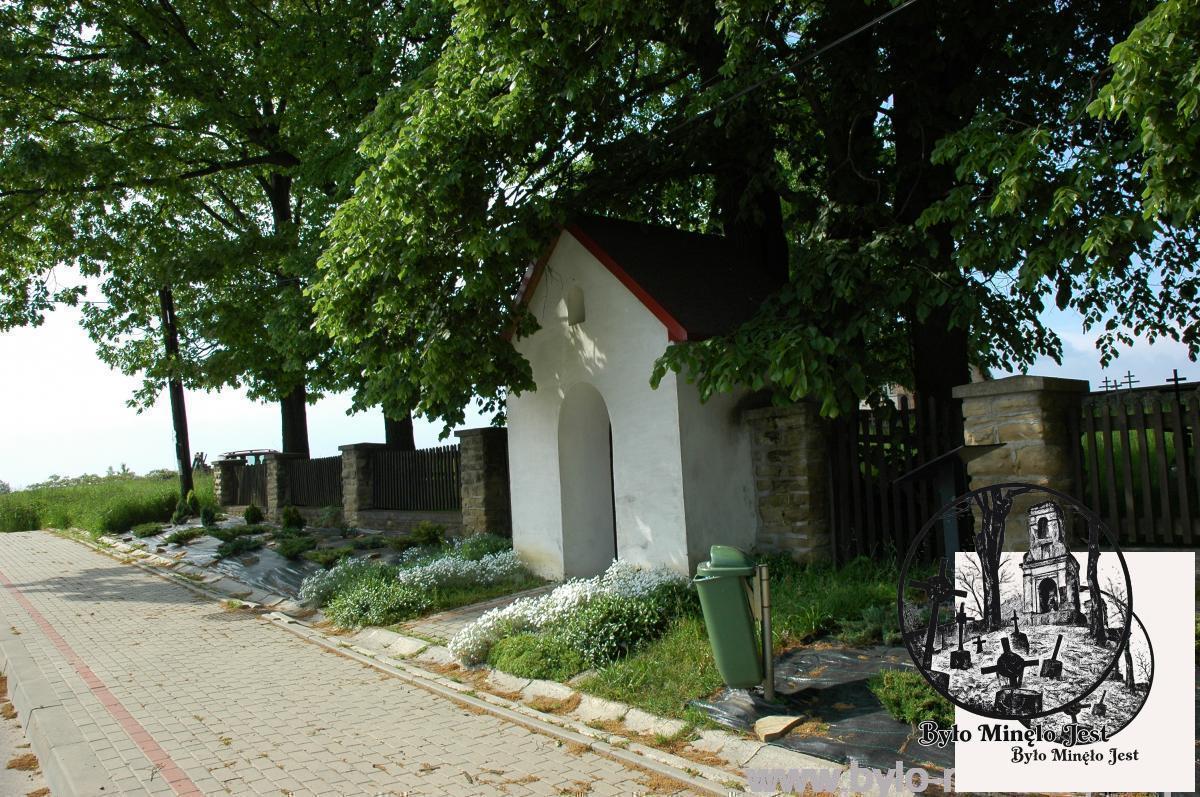 We frontowej ścianie ogrodzenia znajduje się kapliczka (starsza niż sam cmentarz), a po obu jej stronach są drewniane bramki prowadzące do środka cmentarza.