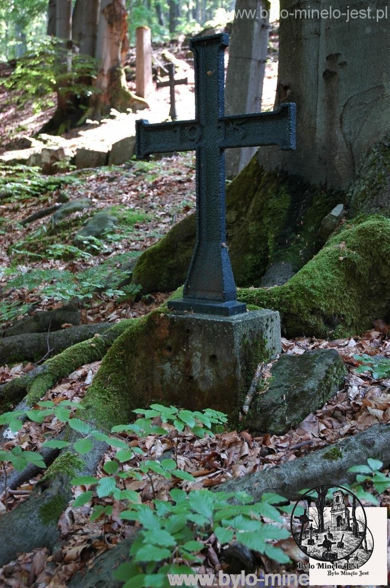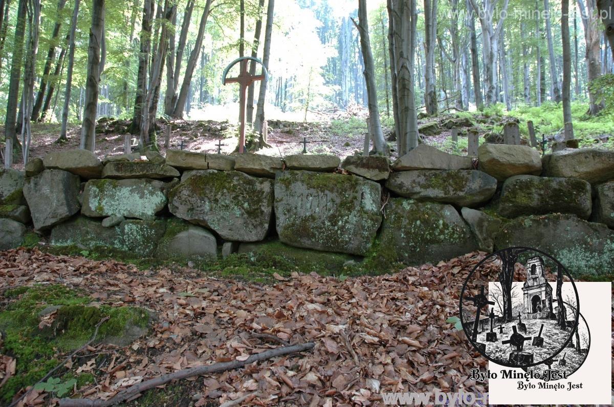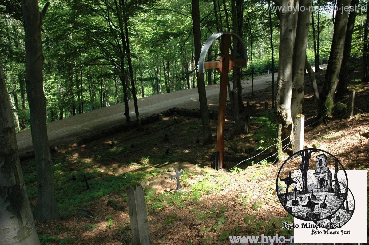 Projekt cmentarza jest dziełem Hansa Mayra, o czym na pierwszy rzut oka świadczy duży drewniany krzyż przykryty blaszanym daszkiem. Bazując na starych szkicach cmentarza wiadomo, że już w trakcie jego realizacji był on wkomponowany w otaczający go krajobraz, a aktualnie wygląda on tak, jakby był integralną częścią lasu. By to poczuć warto usiąść chwilę na stopniach cmentarza, lub na głazach ponad nim. Widok jest niesamowity, zarysy mogił, cokoły krzyży przysypane starym listowiem, a do tego korzenie drzew otulające całość. Na cmentarzu tym, na jego kamiennym murze, zachowały się dwa napisy: jeden ITALIEN KRIEGER drugi 1917 гoдa, co świadczy iż budowali go m. in. włoscy i rosyjscy więźniowie.