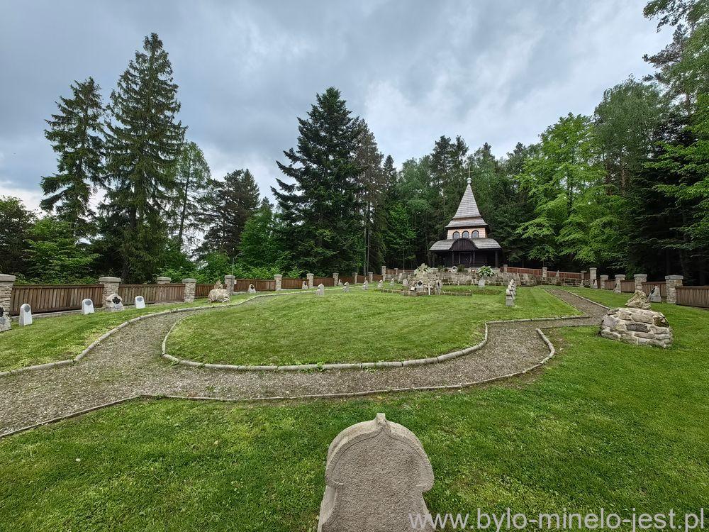 Motywy miejscowego budownictwa to wspomniana wyżej przepiękna drewniana, dwukondygnacyjna kaplica o wysokości 14 metrów (wraz z krzyżem), usytuowana na półkolistym tarasie podniesionym w stosunku do pól grobowych o metr.